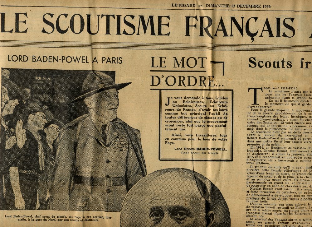 le 13 décembre 1936 pour accueillir Baden-Powell comme l'indique l'article