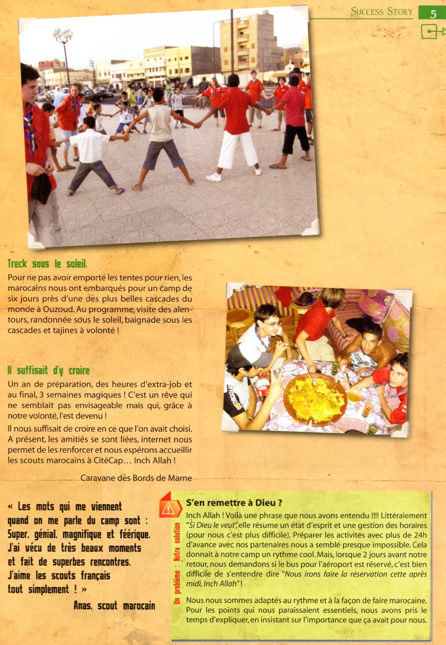 L’été 2009, les Pionniers et Caravelles (14-17 ans) Scouts et Guides de France du groupe des Bords de Marne ont vécu un camp avec des scouts hassaniens marocains.