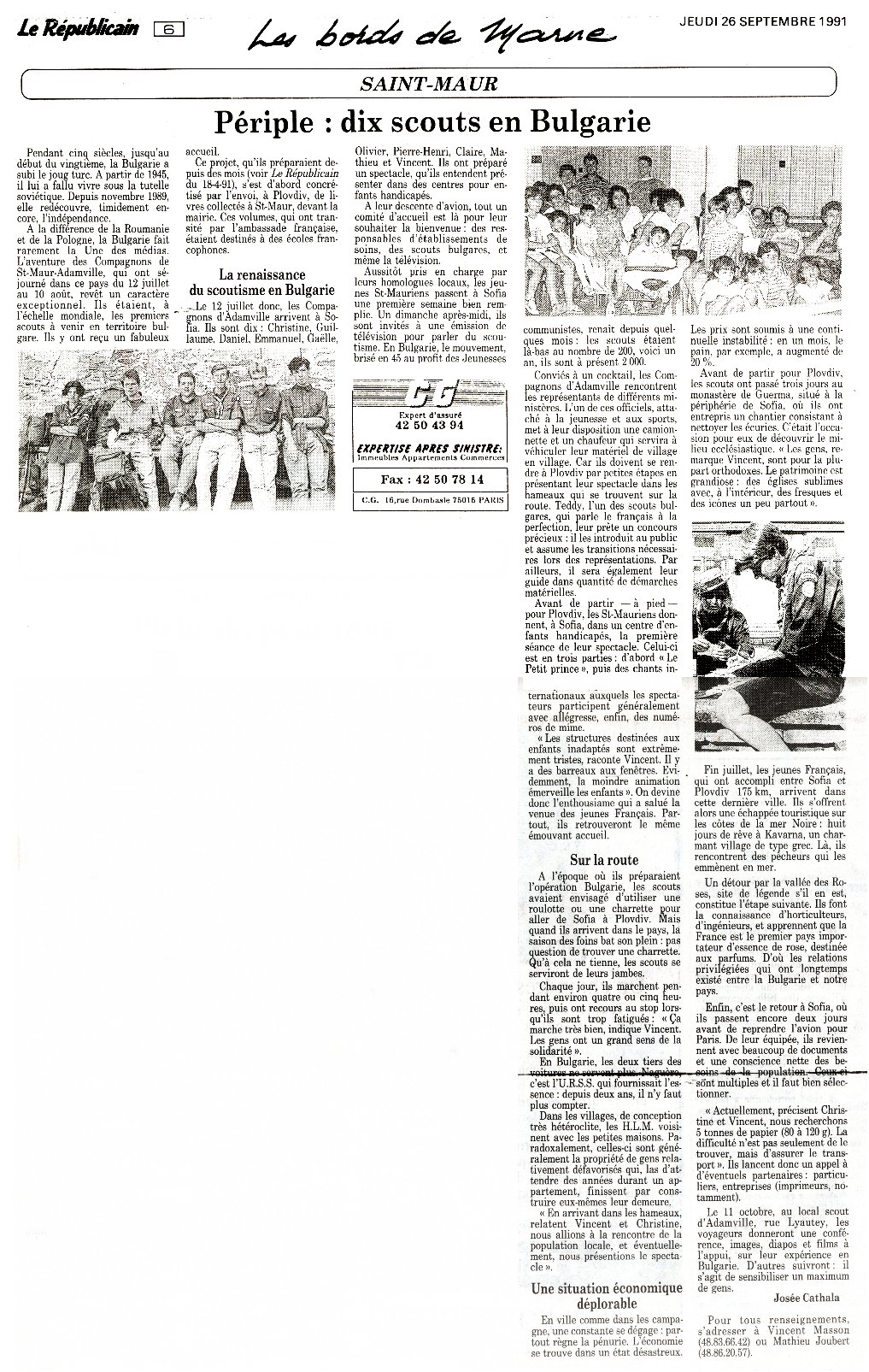 | Les compagnons de Saint-Maur en Bulgarie en 1991 |