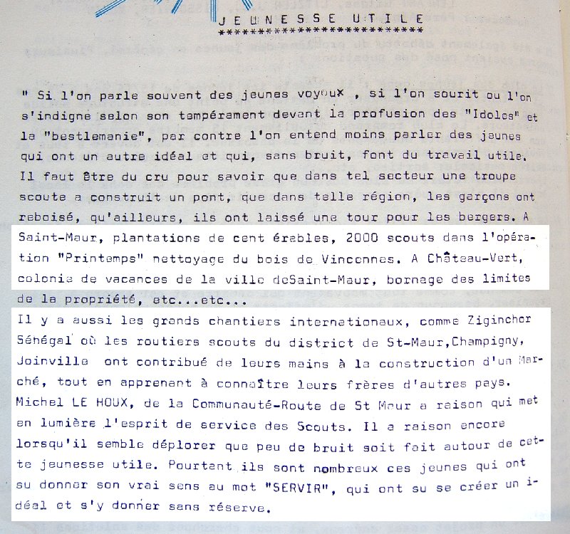 On peut voir dans ces extraits du journal Scout de mars, avril et mai 1962, que des unités du Val de Marne avaient adhéré à cette opération.