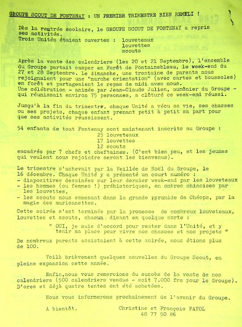 journal de la paroisse Saint-Germain de Fontenay sous Bois, on annonçait
