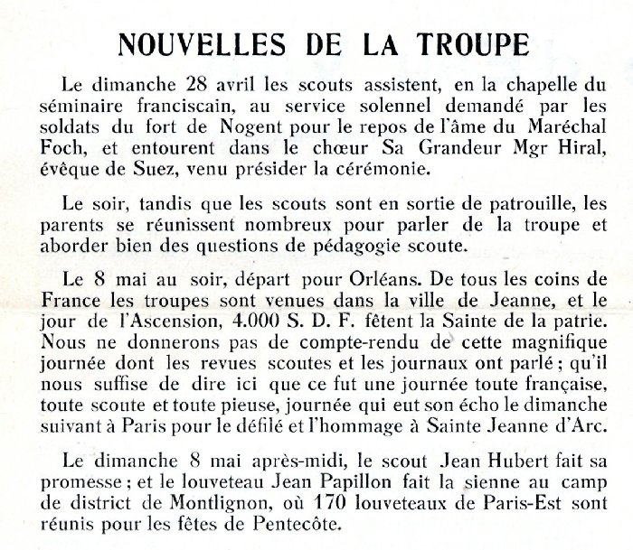 (Quelques années plus tard, Jean Hubert,qui est mentionné ci-dessus, prendra en charge la troupe de la 1° Vincennes)
