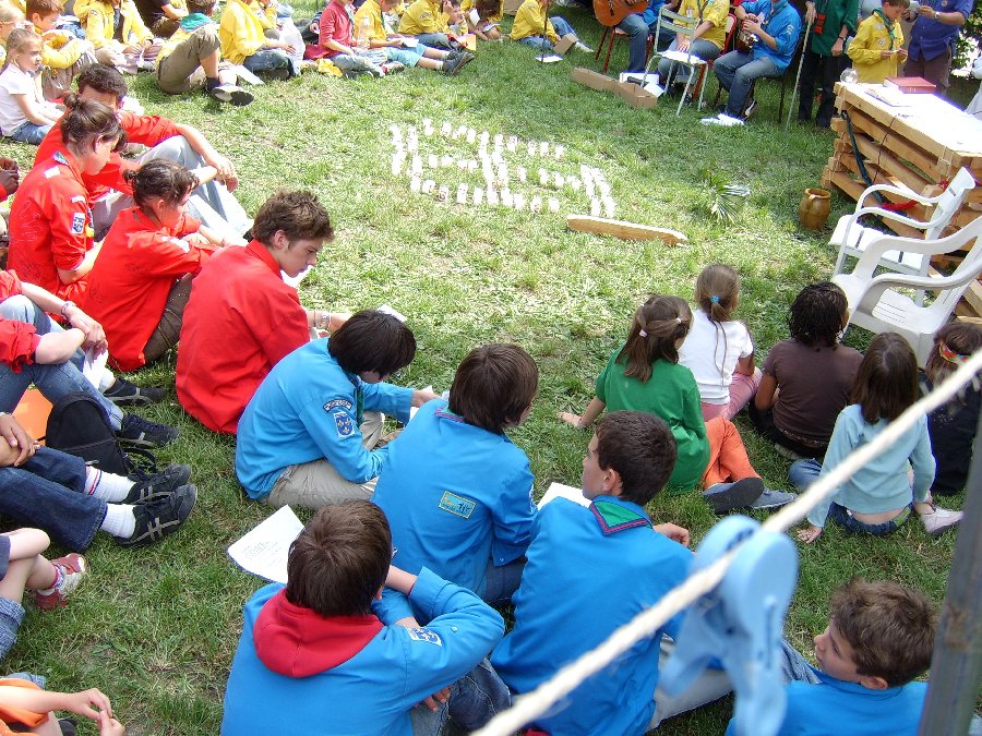 croix scoute formée par les bougies apportées par les jeunes