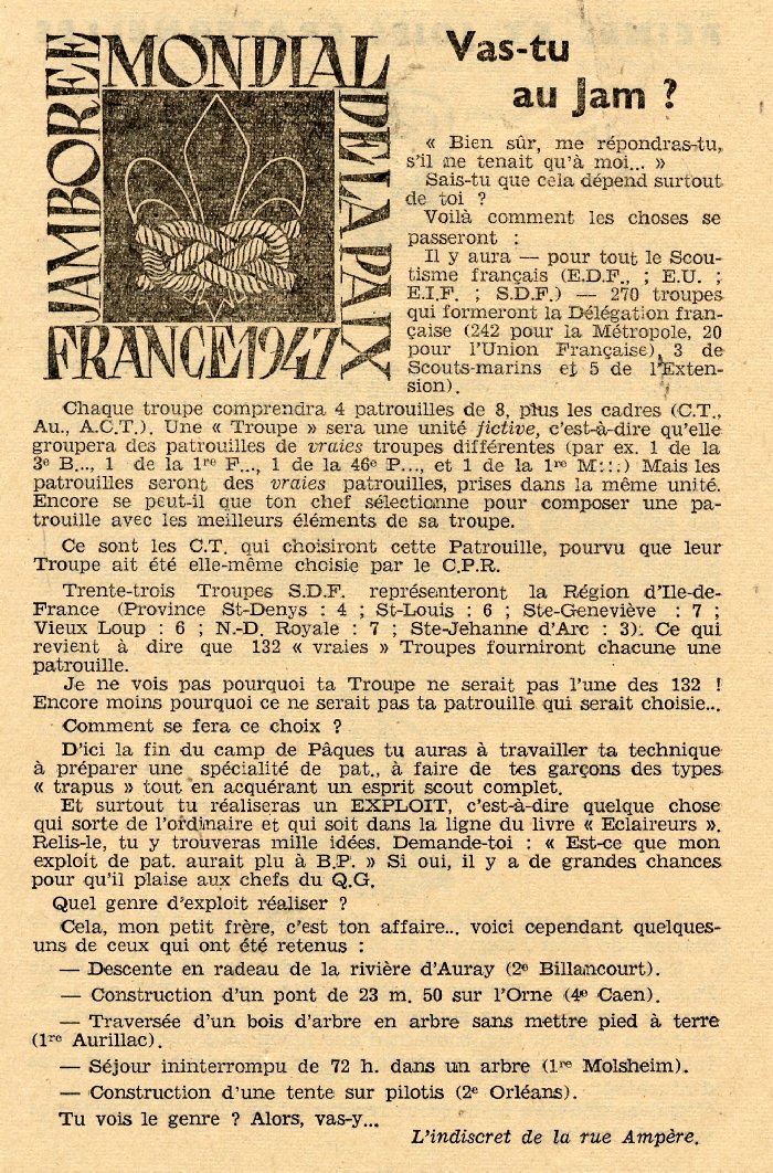 pour participer au jamboree, mais dans le numéro de mars 1947 du journal