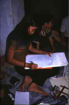 Nous rendant compte de la chance que nous avions de réaliser ce projet nous voulions à tout pris la partager avec d'autres personnes. Nous avons donc eu l'idée de créer une sorte de correspondance entre des louveteaux de notre groupe et des orphelins du Viêt-Nam. En France avant notre départ, nous avons demandé aux louveteaux de raconter sur papier leurs journées, leur vie de famille, leurs vacances, mais aussi de faire un portrait d'un vietnamien. Avec eux, nous avons cherché des objets qui représentaient les Scouts de France, la France et en particulier la région parisienne : cartes postales de Paris, la tour Eiffel, un ballon de foot de la coupe du monde 98, des revues louveteaux, des revues Géo sur des villages français, une croix scoute et un insigne du scoutisme mondial. Toutes ces lettres et objets ont été rangés dans une valise qu'on surnomme "la valise jaune" en référence à la couleur de la chemise louveteau. |