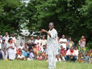 Antoine dans son allocution a eu à expliquer au public les modes de transmission du VIH sida. Pascal a sont tour a montré le port des préservatifs avec un zizi en bois. Tout ceci étant animé par Victor, président d’Amecaa-Togo.