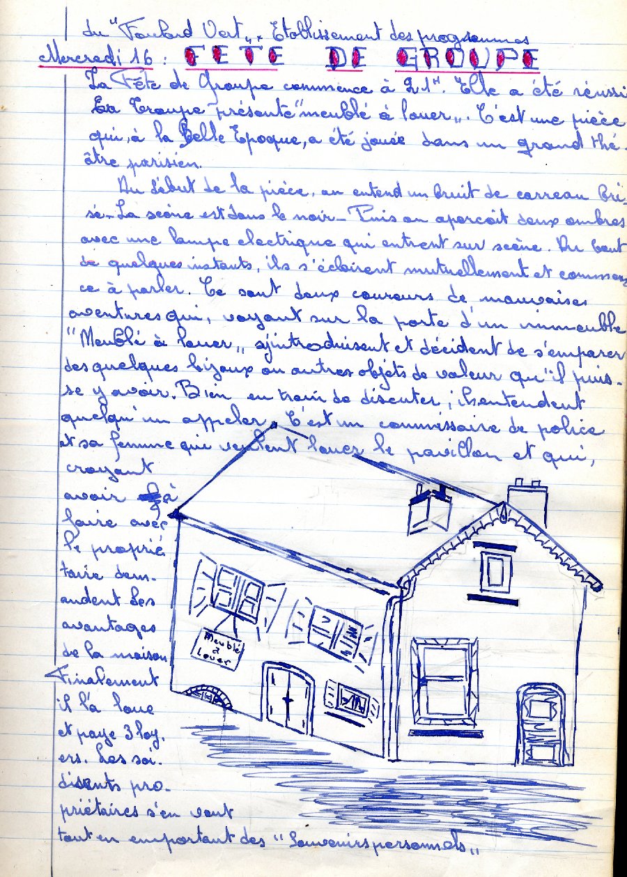 Page de ce cahier d'activités de la troupe de Villeneuve