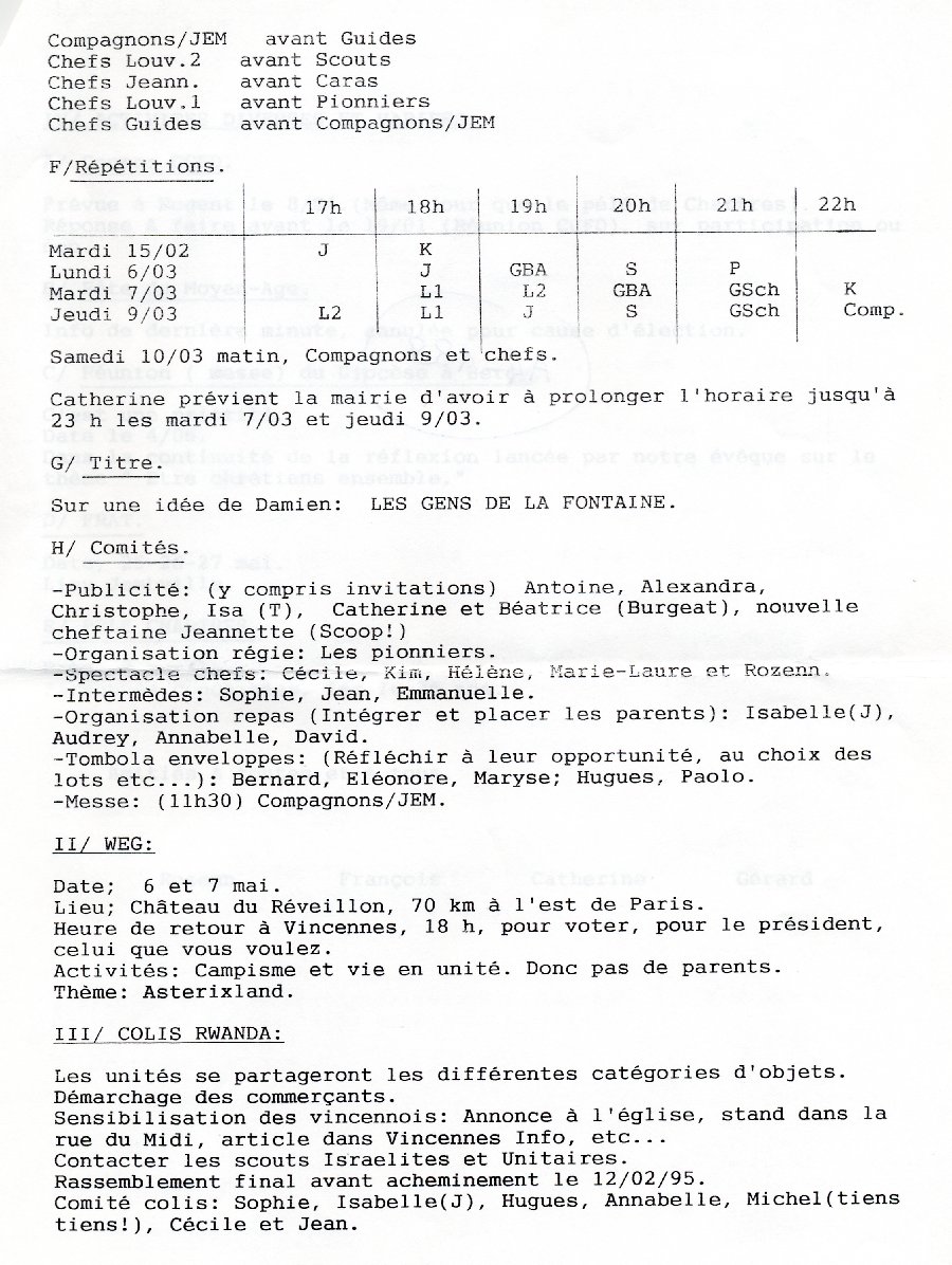 Le dimanche 18 mars 2001 la messe de 10h15 à l'Église Notre-Dame de Vincennes avait été préparée par des anciens du Groupe. Tous ces anciens se sont alors retrouvés à 12h30 au 35 rue Mirabeau pour un déjeuner qui n'a pas été gâté par un véritable temps de mars.