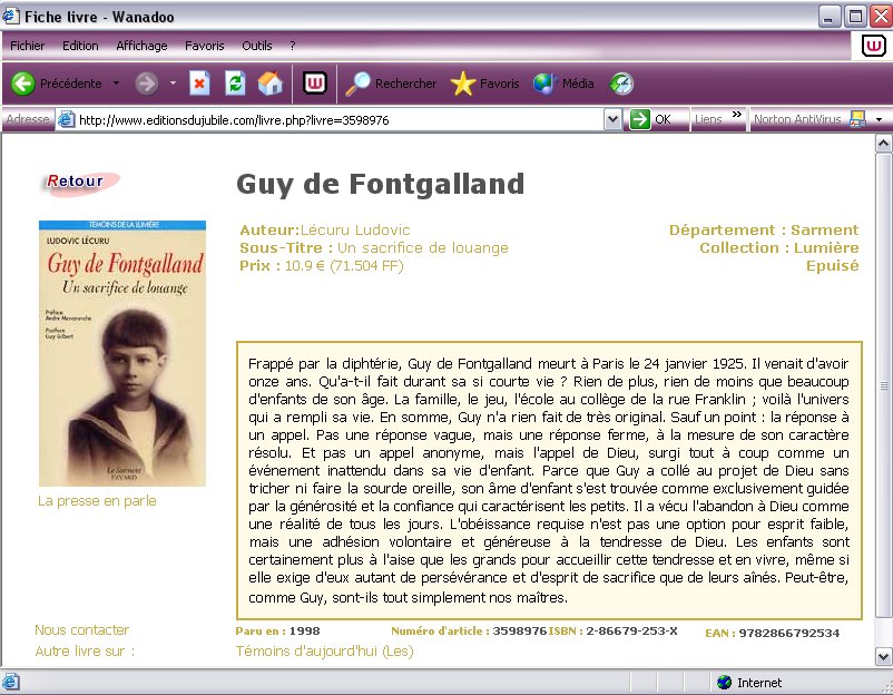 page trouvée sur internet en 2005 concernant un livre écrit sur Guy de Fontgalland